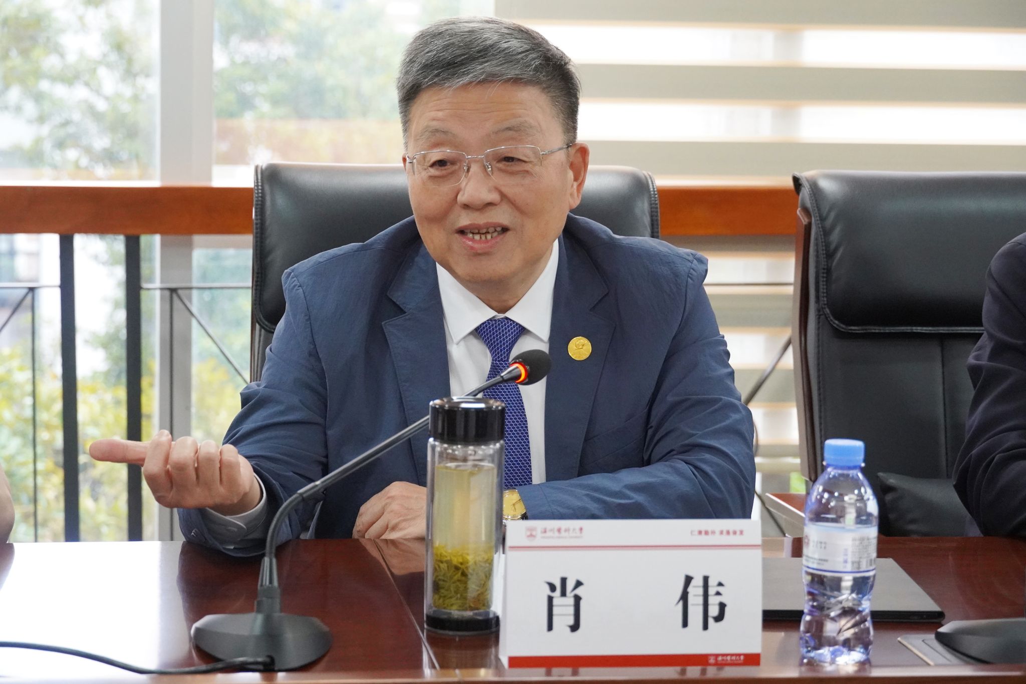 随后,肖伟一行来访我校进行交流指导,校党委书记吕一军代表学校接见,并对肖伟院士一行莅临我校表示热烈欢迎,对肖伟院士加盟我校,助力中医药教育事业表达衷心感谢。