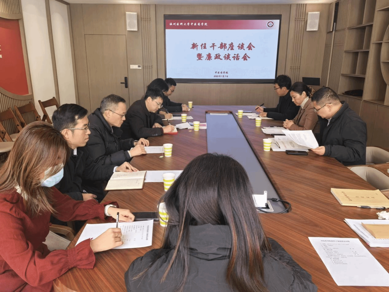 1月7日,国产探花 召开新任干部座谈会暨廉政谈话会,院党委书记、副院长刘瑜,党委委员、副院长袁拯忠,党委副书记、纪委书记梁栋出席会议,会议由梁栋主持。学院新选聘的各系主任、副主任、主任助理,新当选的党委委员、纪委委员、支部书记,科级干部参加会议。