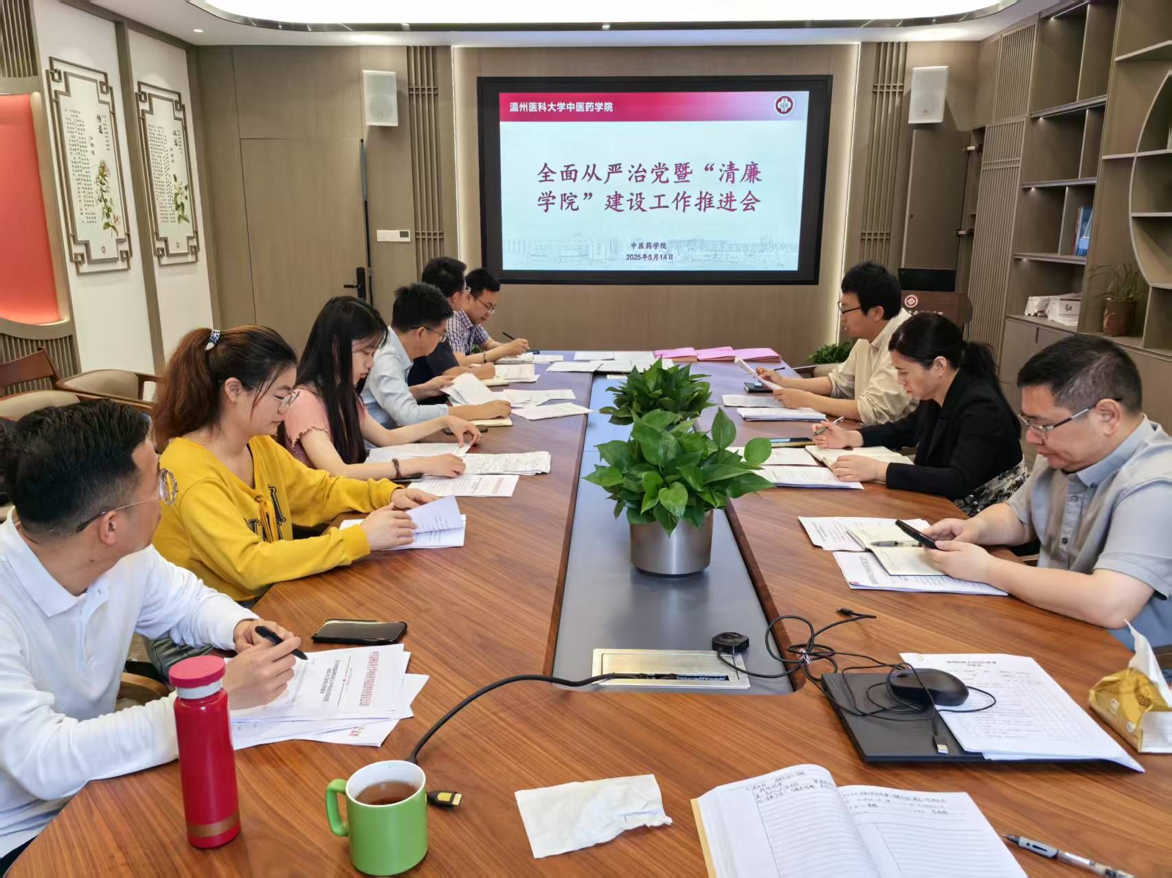 刘瑜作总结讲话。她强调,学院推动全面从严治党、加强“清廉学院”建设需从四方面发力:一是要强化政治引领,学院党委切实担负主体责任、班子成员履行“一岗双责”,构建“年初部署、年终考核”的责任体系;二是要深化教育引导,扎实开展深入贯彻中央八项规定精神学习教育,巩固党纪学习教育成果,建立健全廉洁教育长效机制;三是要完善监督机制,针对招生、研究生复试、科研经费等重点领域制定廉政风险防控图,规范教职工请假、外出讲座、兼职取酬及出国(境)审批与报备程序;四是要创新廉洁文化,充分挖掘中医药“治未病”等廉洁文化因素,打造具有中医药学院特色的廉洁文化品牌,不断营造风清气正的育人环境。