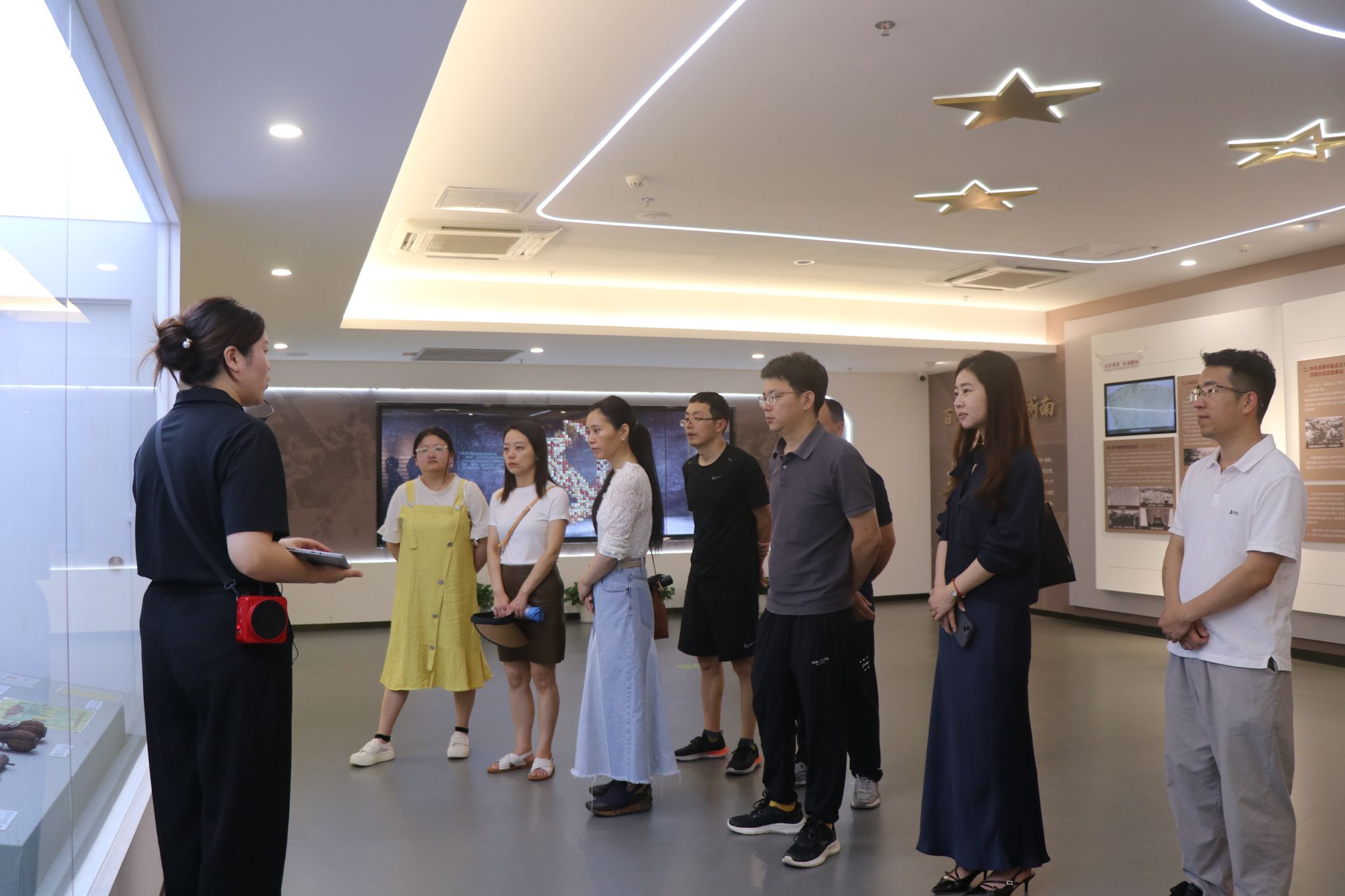 学院党员干部一行首先来到瓯江红党建人才综合体,在讲解员的引导下,依次参观了时光走廊、党史教育馆、主题党日馆、党群服务区、人才政策厅、文创展示区等各个特色区域板块,重温了党的辉煌历史,探寻了温州的革命历史与红色印记,了解了蕴含在历史文物中的革命故事。