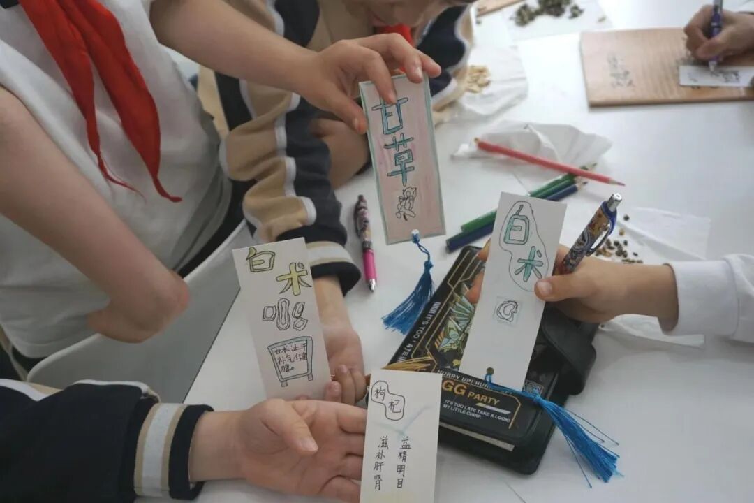 亲身体验了中药材之后,小朋友们一人领到了一张精美的空白书签,发挥自己的想象力,用彩色铅笔来绘制他们眼中中药的模样。在小朋友们稚嫩的笔触下,一幅幅独具童趣的中药画卷缓缓呈现。