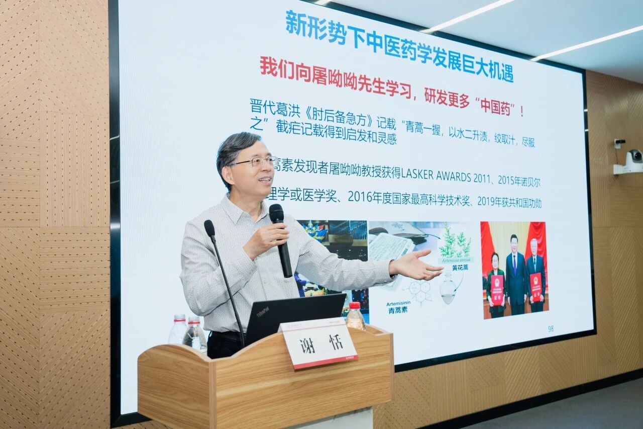 在讲座中,谢恬教授从中医药理论、系统思维和分析还原法的有机结合、中医药学与西医药学的有机整合等方面阐述了中西医结合“分子配伍”理论的科学内涵,并分享了在“分子配伍”理论指导下,开展新药榄香烯脂质体三十多年的研发历程,这一理论颠覆了药物化学等教科书“无氮氧不成药”的观念,指明了新形势下中医药学发展的方向。