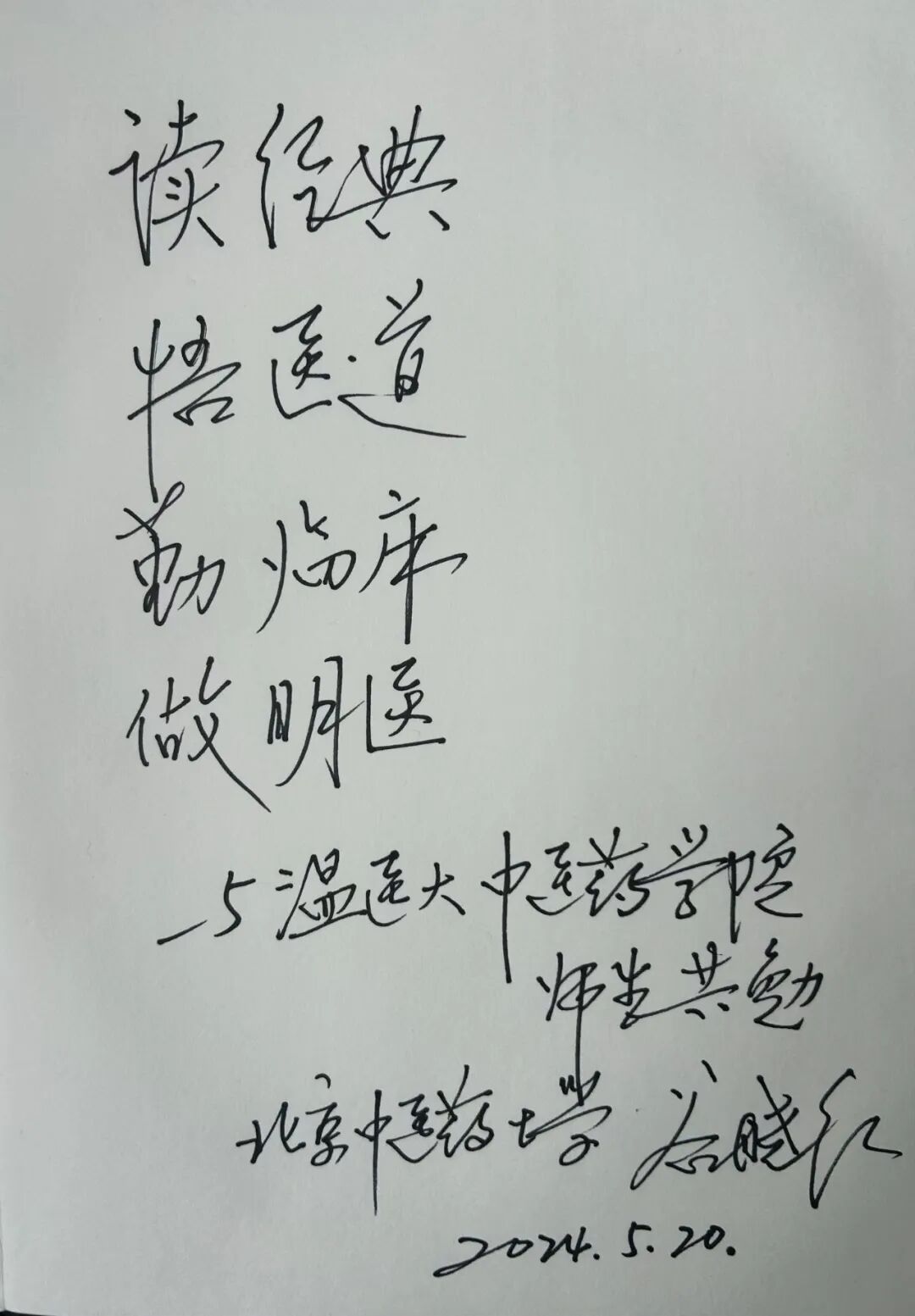 大讲堂结束后,谷晓红教授为国产探花 题字寄语,读经典、悟医道、勤临床、做明医,并与各位师生合影留念。