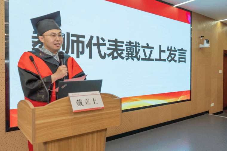 教师代表戴立上老师在发言中,希望同学们在走向职场的路上永远保持学习的热情、积极面对挑战、培养谦逊与合作精神以及好好热爱生活。