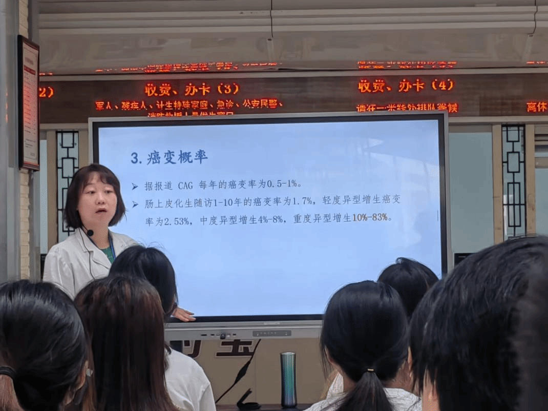 随后,消化内科的副主任中医师郑乐乐老师为同学们带来了一场以“痞满”为主题的中医讲座,内容满满,都是“干货”。不仅有生动的PPT讲解,还有郑老师本人倾情绘制的场景小漫画,让这场小讲座愈发妙趣横生。郑老师不仅讲解了“痞满”的定义、病因、鉴别诊断标准,而且提到了与其相关的临床症状及原理等。在讲座的最后,郑老师以一个问题作为结尾——如何学习中医?她给出的回答是:“读经典、跟名师、做临床。”读经典,是要好好读书;跟名师,是要拜对老师;做临床,是要积累临床经验。她还重点强调了做临床的重要意义,正如“人不能只在岸上学游泳”,中医学生也不能仅仅对着解剖图解学临床,还应当积极投入实践中去。