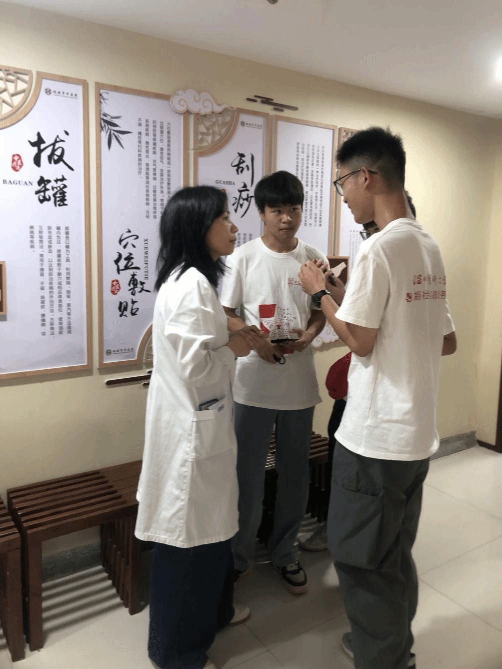 在参观学习的间隙,同学们还以线上填写问卷、面对面访谈等形式采访了若干临床医生、讲解老师及药房工作人员,收集了温郁金临床应用方面的重要信息,为实践团后续开展关于温郁金全产业链的调研活动及实践报告的撰写提供了重要的参考。