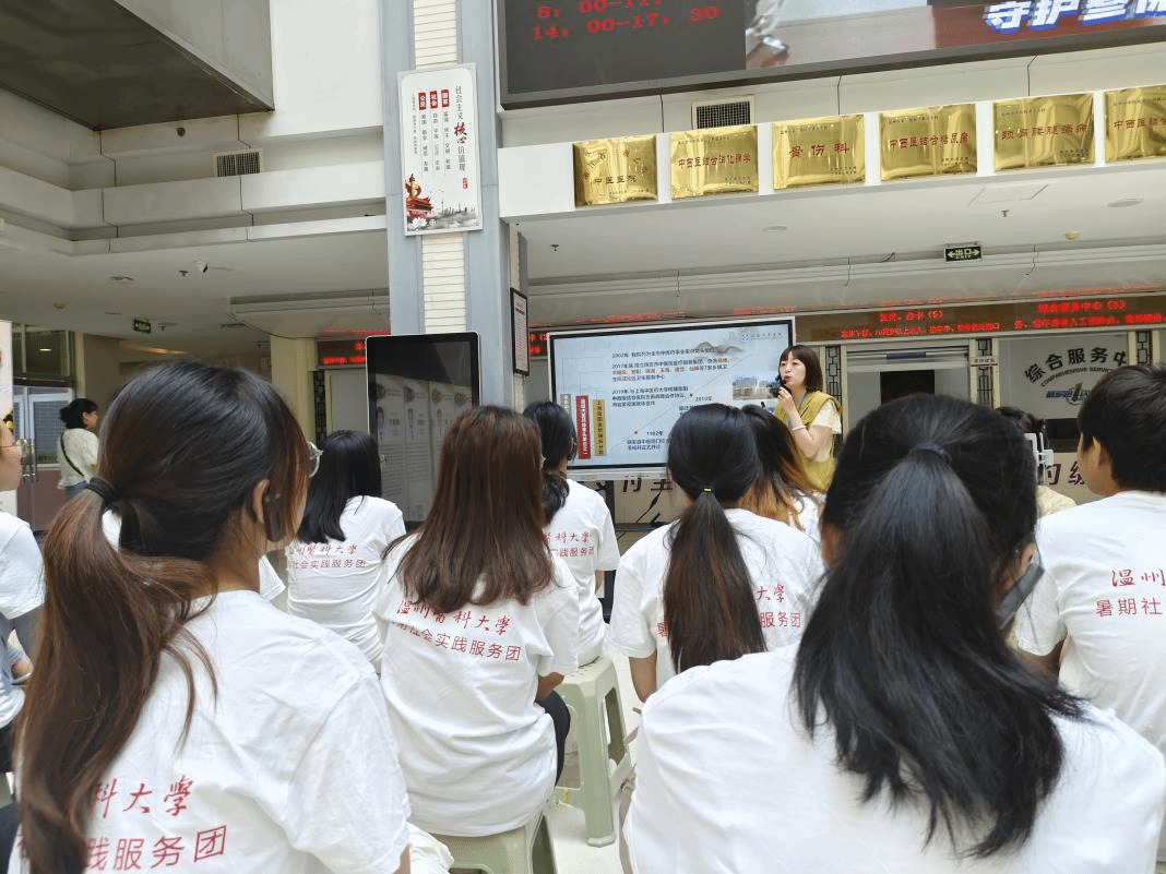 活动伊始,瑞安市中医院的朱虹老师为实践团成员们简单介绍了医院的历史沿革以及当日以体验瑞安中医药文化为主题的活动内容。除此之外,她还播放了一段医院医护人员自编自演的中医经络拍打养生操,提出“传统也可以很时尚”的观点。中医的与时俱进,是“让中医文化绽放新的生命力,焕发中华文化璀璨的关键一笔”。