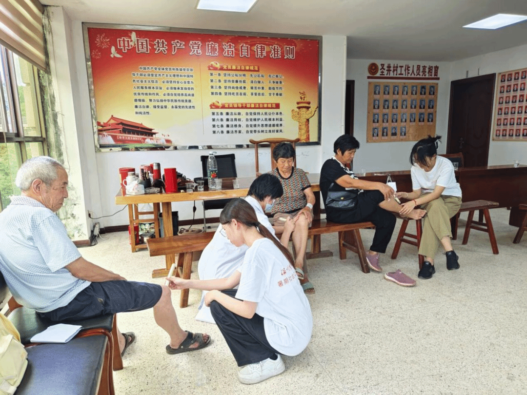 活动期间,前来义诊的医生和实践团的同学们以专业的技术、热情的态度,为当地村民提供了优质、便捷的健康服务。团队设立了多个健康小站点,包括血压、血糖检测站,艾灸、耳穴理疗点等。活动初期参与人数并不多,据了解是村民们担心学生测量的血压、血糖数据不准。但在得知有专业医生过来以及村委会的热情宣传下,参与的村民越来越多。医生和实践团成员们以过硬的专业知识、耐心的指导以及热情的态度为他们提供优质的健康服务,赢得了村民们的一致好评。在测量血压和血糖的过程中,医生和实践团成员们不仅为村民们提供了实时的数据反馈,还根据他们的身体状况给予了相关的建议和指导;与此同时,医生和实践团成员们还向村民们普及了饮食摄入、生活习惯等对身体健康的影响相关知识,以及如何正确预防疾病的重要性。此外,实践团成员们在义诊过程中还向村民们简单介绍了常见中草药的功效。这些知识的宣传不仅提高了村民们的健康意识,帮助他们更好地预防隐性疾病和改善自己的健康状况,也在很大程度上宣传了传统中医药文化。