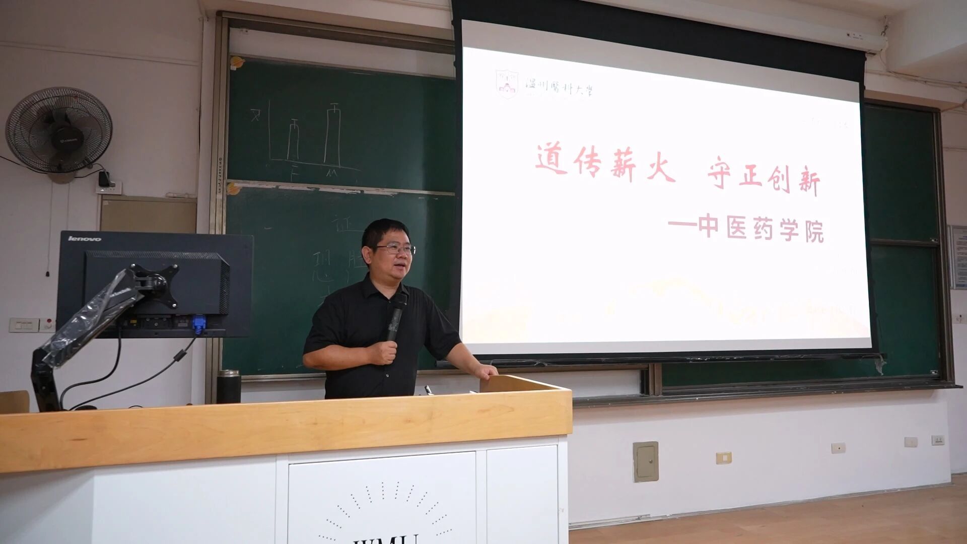 活动伊始,袁拯忠以“道传薪火,守正创新”为主题,从专业介绍、学系架构、课程分析、特色课程、基地和教学点及就业前景六个方面,对学院进行了全面、广泛的介绍。紧接着,他以“医路走来,‘中’心不改”为主题,分享了自己的求学经历和职业生涯,介绍了自己在失眠诊疗、交泰丸配方等领域取得的学术成就,强调了提升个人综合素质的重要性。最后,他勉励岐黄学子当以中医药文化为基础,以中医药服务为载体,致力于将中医药推及至祖国的各个角落,以更好地谋求全国人民的健康福祉。