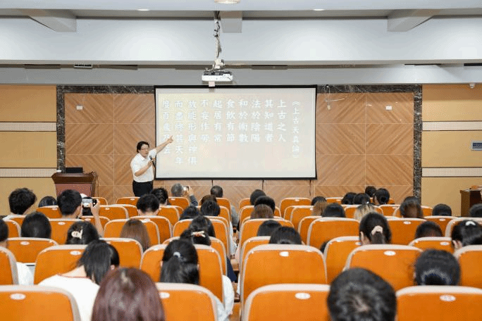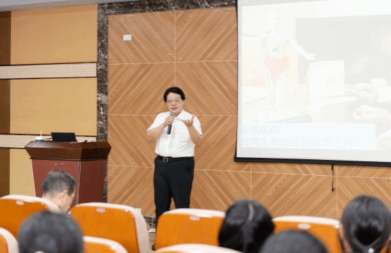 林哲安教授以恩师崔玖医师的经历为引,指出中医在医疗领域不可或缺的作用以及与日俱增的影响力。林教授提到MEDICAL4.0时代是医疗朝向跨域数字转型的时代,而即将到来的MEDICAL5.0时代,则是朝向中医文化转型的时代。林教授带领团队,秉持”正念,永续,利他,共好“的价值观,致力于东方医学大健康 ONE HEALTH体系研究,探索中西医融合之道,以科学方式研究中西方传统医学。林教授倾情为师生详述了其数字化中医项目,类比爱因斯坦质能方程、波粒二象性理论,结合中医传统阴阳五行理论、色与空相互转化的中国古代哲学观,在此基础上突破了传统中医诊脉的经验壁垒,将脉搏数字化,可视化,真正迈出数字化中医至关重要的一步。同时对于在研究过程中出现的系列问题,也向师生指出批判性思维的重要性。