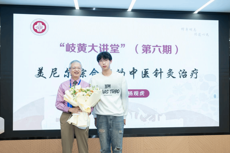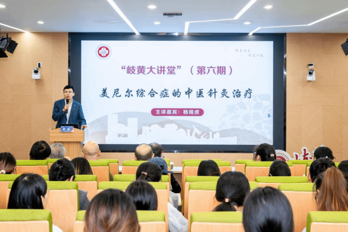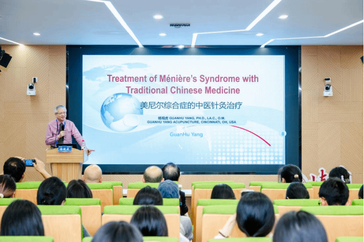 杨观虎教授以“美尼尔综合症的中医针灸治疗”为题,为学院师生带来了一场精彩绝伦的讲座。他以中医眩晕病为切入点,简要介绍了美尼尔综合症,并从病因、病理改变、诊断要点和辨证论治这四个方面详细阐述了自己对治疗该病症的见解。