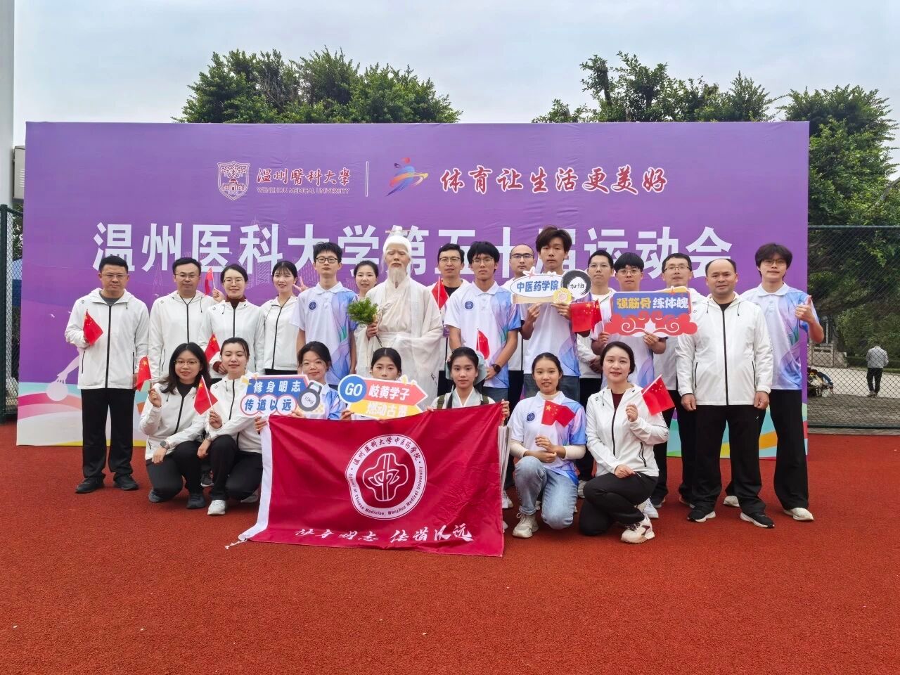 他们以角色扮演的创意,将中医药学的历史传承与民族融合鲜活呈现,既表达了对“修身明志、传道以远”院训的深刻领悟,又在举手投足间散发着博古通今的学养,更以昂扬之姿展现顽强拼搏的体育精神,让整个方阵仿若流动的文化史诗,在运动会的舞台上熠熠生辉。