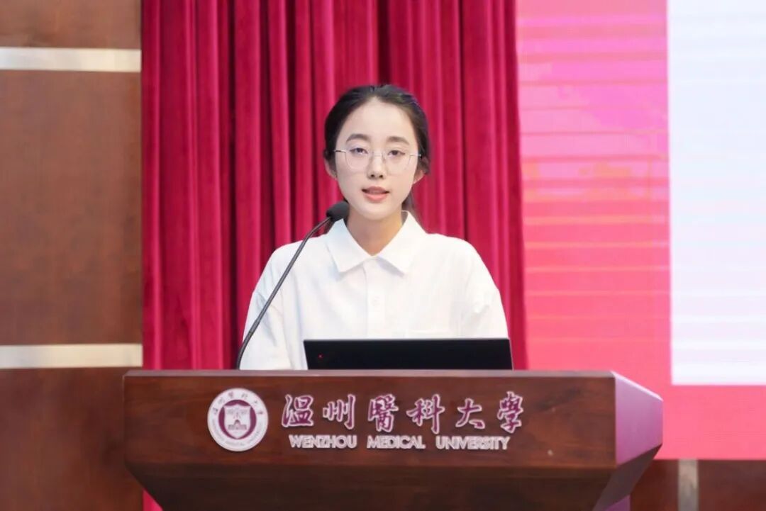 中医学学生代表周钰霖分享了大学生活和学习的感悟,她强调珍惜时间、明确规划,坚定信仰、积极行动,学会调整目标规划与心态。她感谢学院的支持与栽培,希望同学们努力耕耘收获,表彰是激励,梦想在前方。