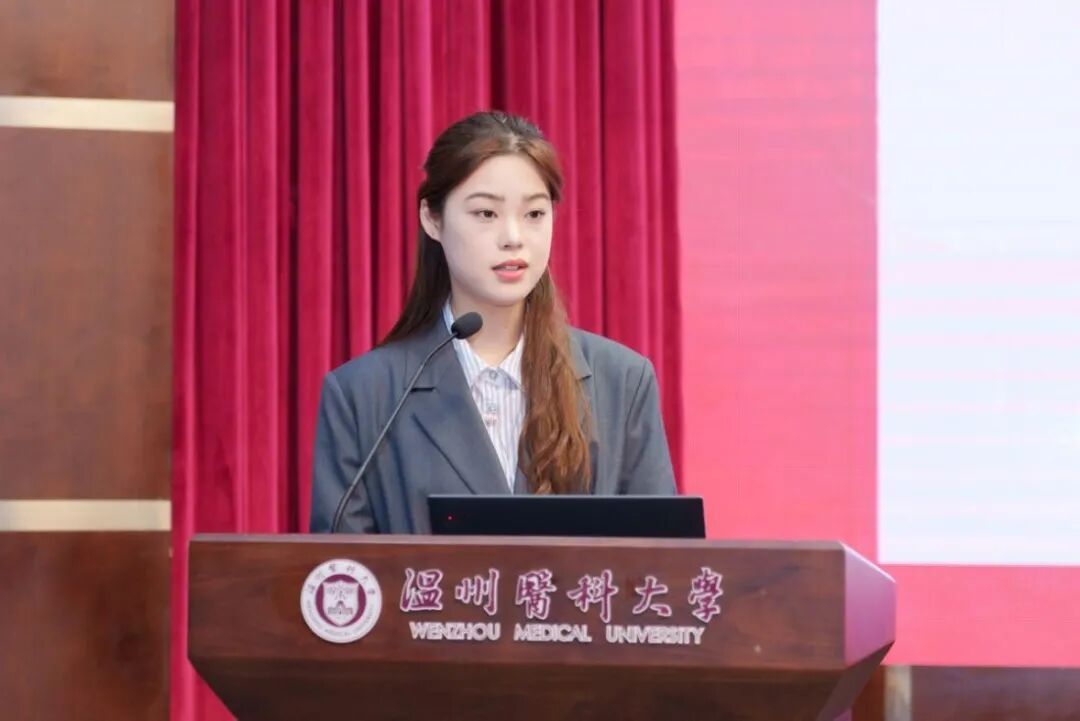 中药学学生代表丰梦熠对自己的学业历程进行了回顾,包括在学业上的深入钻研、实践方面的积极探索以及学生工作中的宝贵历练。她分享了自己的心得,激励学弟学妹们尽早确立目标,找准人生的前行方向,学会自我认同与调适,勇敢地担当起责任,积极融入中医药卫生事业,书写出属于自己的精彩人生篇章。