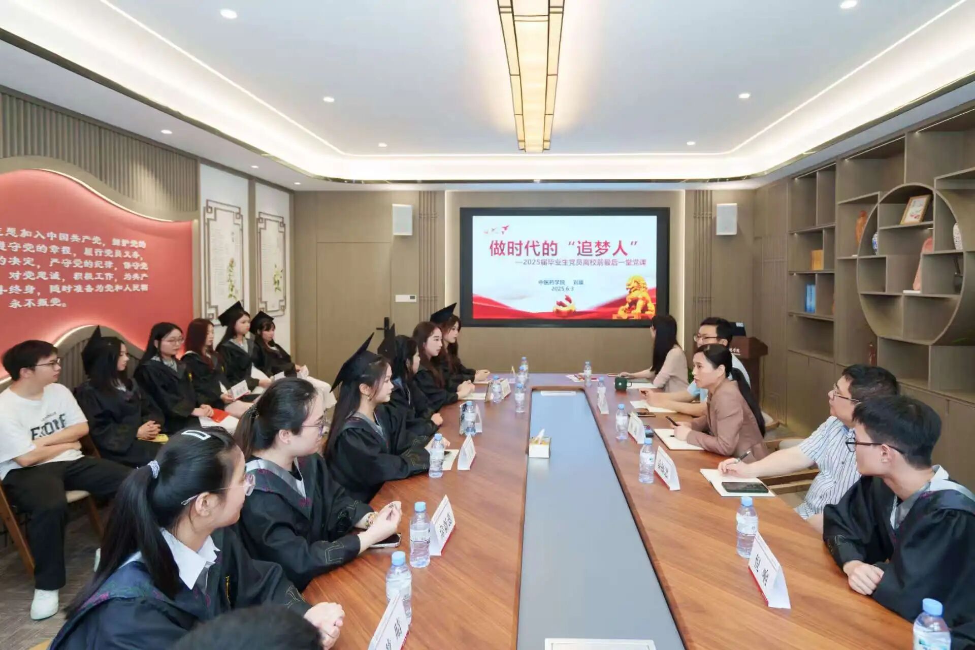 为强化毕业生党员的党性修养和身份意识,引导大家在人生新的征程中牢记党员身份、明确责任担当。6月3日,国产探花 在7A306-3会议室开展“书记有约”暨毕业生党员“最后一次党课”专题活动,学院党委书记、副院长刘瑜,副院长、党委委员袁拯忠,副书记、纪委书记梁栋,辅导员付欢欢,2025届全体中药学专业毕业生党员参加活动。
