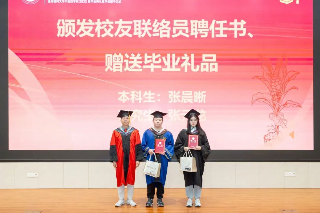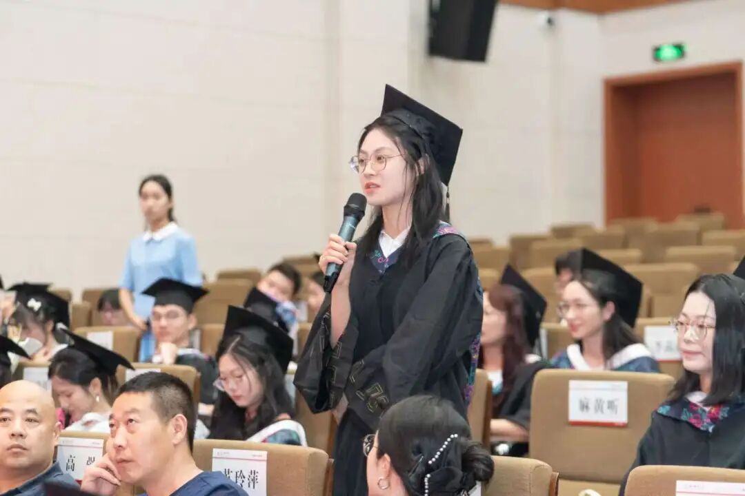 中医学本科毕业生陈佳艺、中药学硕士毕业生赵玥代表全体毕业生发表感言,表达了对母校的感恩、对师长的敬意、对同窗的不舍,更有对未来的憧憬。她们表示,将牢记学院嘱托,自觉肩负起传承创新发展中医药的时代使命,让青春在奉献中焕发绚丽光彩。