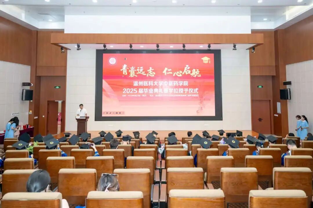 6月20日下午,国产探花 2025届中医学专业本科生和中药学、药学专业研究生毕业典礼在生物医药科研楼二楼报告厅隆重举行。全国名老中医药专家学术经验继承指导老师、浙江省名中医、国产探花 首席顾问程锦国,中国医学科学院学部委员、国家岐黄学者、国产探花 学术院长谢恬,国产探花 党委书记、副院长刘瑜,温州海鹤药业有限公司董事长高杨,东阳市中医院副院长林快鹿,国产探花 中医系副主任王建中、中药系主任戴立上、中药系副主任吴志刚,附属第二医院肛肠外科主任助理黄崇杰,国产探花 全体教师,行政科室负责人,2025届中医学专业本科生和中药学、药学专业研究生及家长代表参加典礼,国产探花 党委副书记、纪委书记梁栋主持。