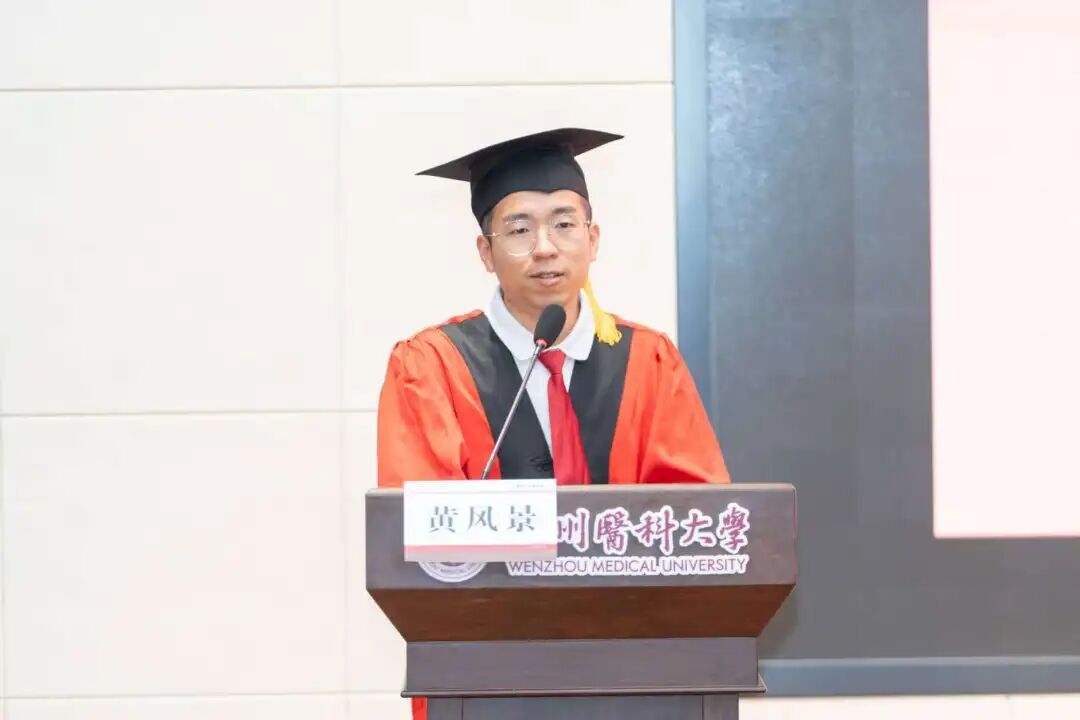 教师代表黄风景在发言中,寄语毕业生能够坚守医者仁心的职业操守,持续保持学习的热情与积极进取的精神,勇于探索未知的中医药领域,将个人理想熔铸于中医药振兴的壮阔蓝图,实现自我价值。