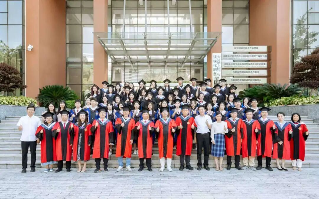 毕业典礼举行了隆重的学位授予仪式,5位导师为毕业生们颁发了校友荣誉证书,并一一扶正流苏、整襟理服、合影留念。
