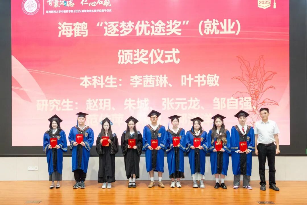 在海鹤“逐梦优途奖”颁奖仪式上,高杨为升学和落实工作单位的学子们颁发荣誉证书。