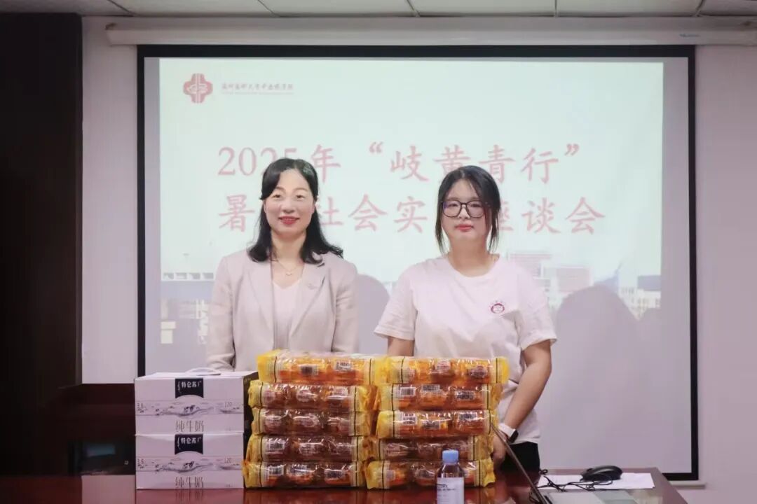 7月9日,国产探花 党委委员、药学院院长林丽,国产探花 党委书记、副院长刘瑜赴永嘉县枫林镇,走访慰问国产探花 “岐黄青行”暑期社会实践团师生,观摩实践活动并召开交流座谈会。会议由国产探花 辅导员付欢欢主持,永嘉县卫健局党委委员、副局长戴光辉,枫林镇副镇长朱笑乐,枫林镇中心卫生院院长林忠亦,枫林镇中心小学书记徐盛成,温州市英特药业有限公司销售总监张林,国产探花 党委副书记、纪委书记梁栋,实践团的指导老师和学生代表出席。