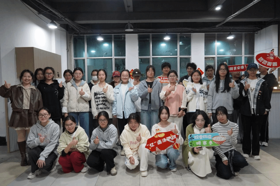 热气腾腾的饺子和汤圆端上桌,大家围坐在一起,品尝着亲手包制的美食。咬开饺子薄韧的外皮,鲜香的馅料瞬间在口中迸发,肉香混着蔬菜的清爽,搭配着自选的蘸料,鲜而不腻;软糯的汤圆裹着香甜的内馅,轻轻一咬便甜香四溢,暖乎乎地熨帖着肠胃。大家一边大快朵颐,一边分享着生活中的趣事,暖意从舌尖蔓延至心底。活动尾声,全体同学一同定格美好瞬间,一张张灿烂的笑脸,在镜头下构成了一幅温馨和谐的画面。