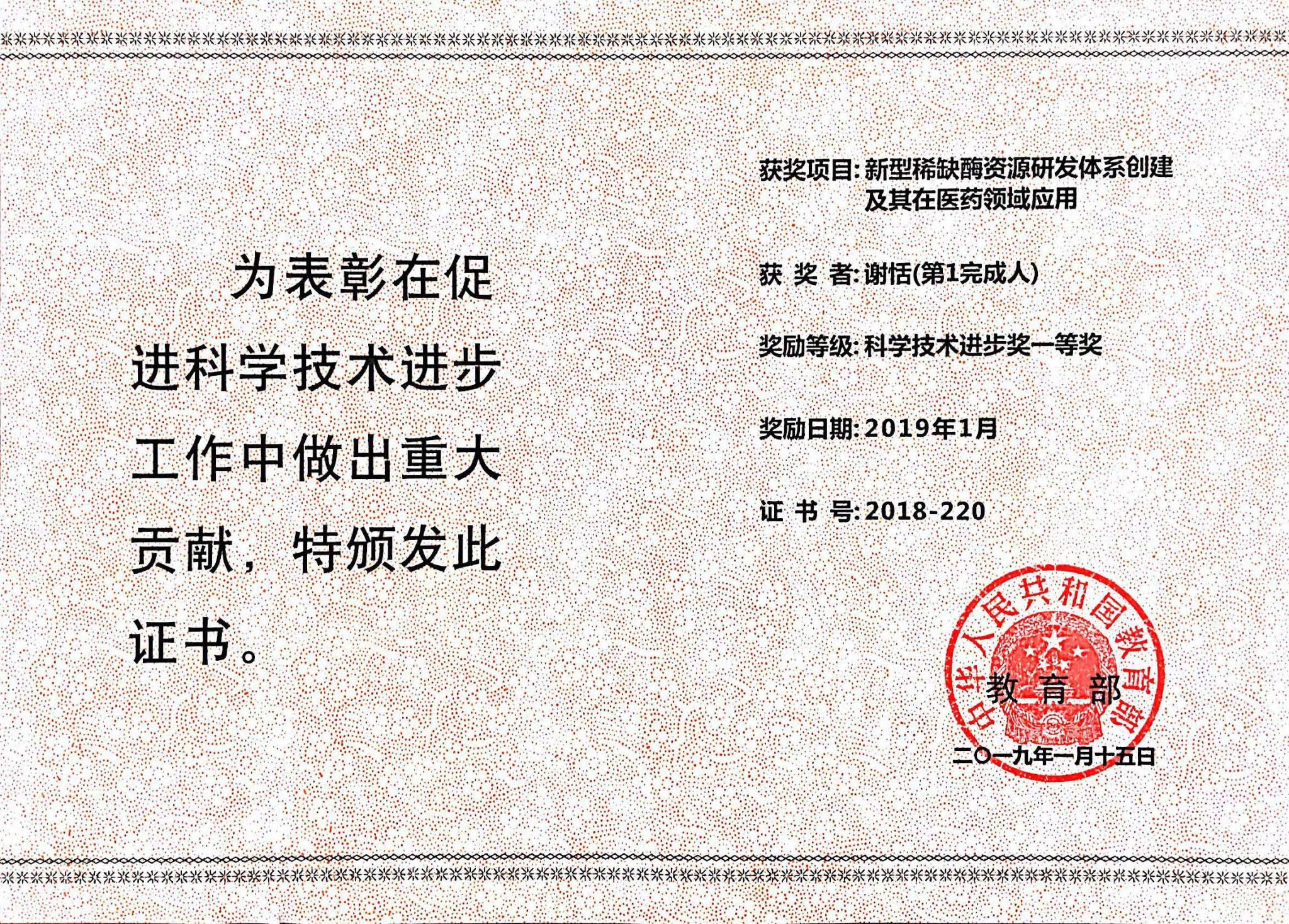 中国发明专利金奖、国家科技进步二等奖2项(2012/2019)