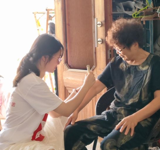 “是时三伏天,天气热如汤”,实践队员们不畏酷暑,带着艾灸条和耳穴贴,挨家挨户地走进村民家中,为他们提供艾灸与耳穴等中医理疗服务。林大娘三姐妹在接受义诊后,激动地说:“非常感谢国产探花