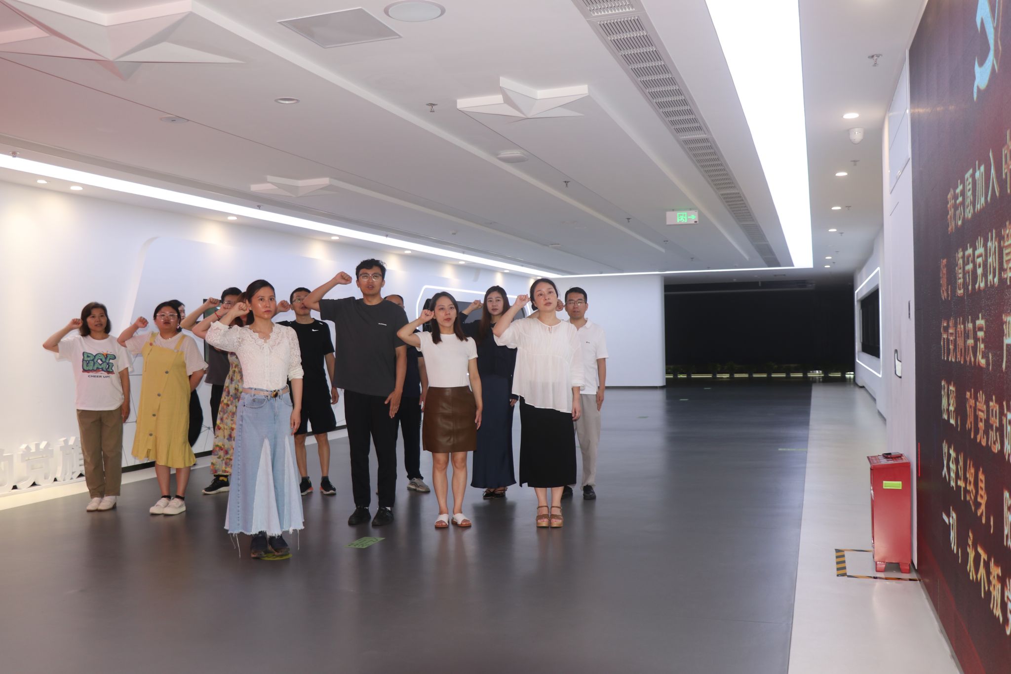 站在鲜红的党旗前,全体党员怀着无限崇敬之心,在刘瑜书记的带领下,高举右手庄严宣誓,重温入党誓词,众人更加坚定了永远忠于党、永远跟党走的理想信念。
